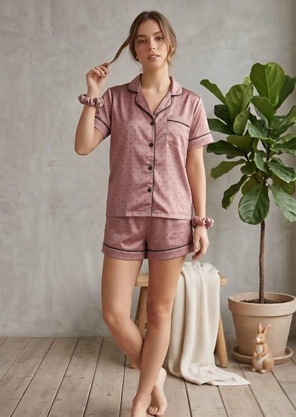PIJAMA SATÍN SHORT -CAMISA BOTONES