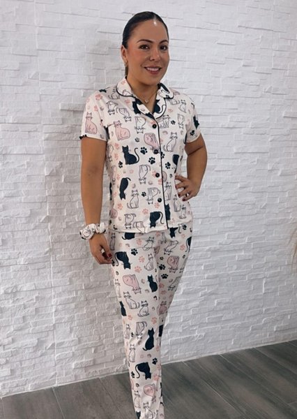 PIJAMA DAMA PANTALÓN -CAMISA MANGA CORTA BOTONES BRUSH